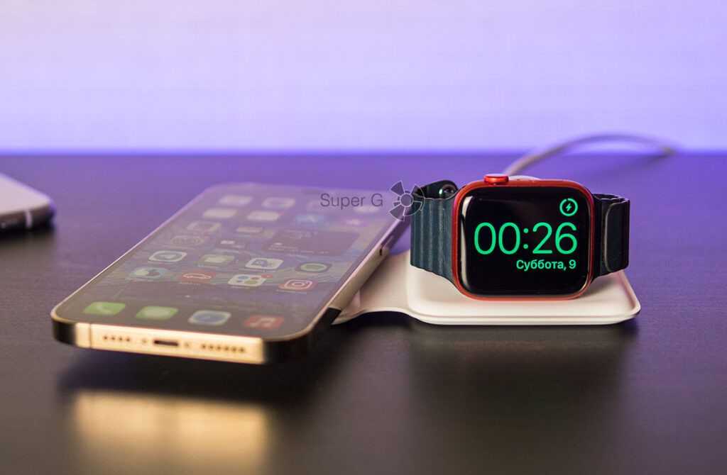 - для корректной работы сначала подключаем MagSafe в розетку, затем укладываем на неё смартфон и часы