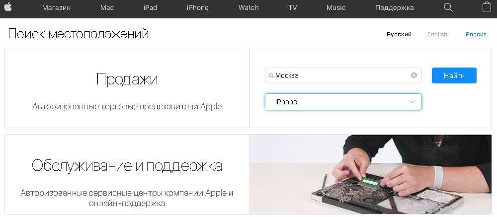 А чтобы найти авторизованную ремонтную мастерскую в вашем регионе, посетите эту страницу на сайте технической поддержки Apple.