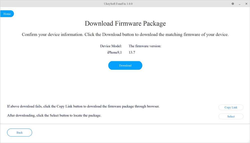 Затем он автоматически обнаружит ваш iPhone, нажмите «Загрузить», чтобы загрузить соответствующий пакет прошивки для вашего iPhone.