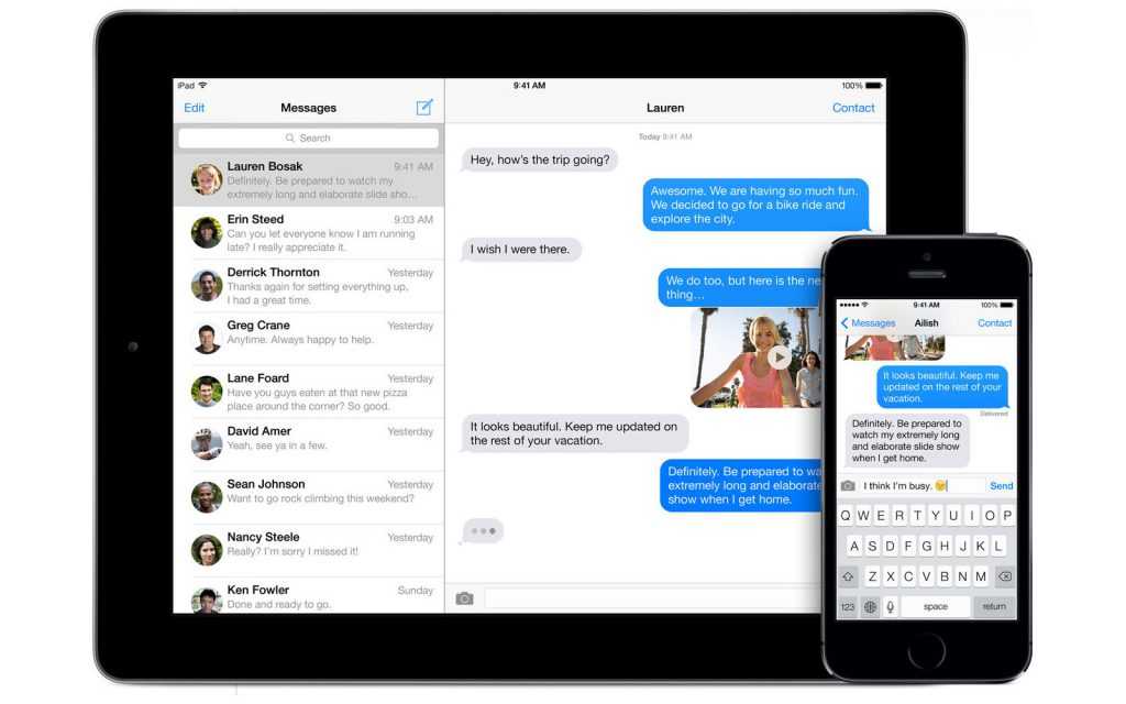 Как можно жить без этого сервиса, не представляю. Синхронизация между всеми устройствами: iPhone, iPad и Mac синхронно получают сообщения, вся переписка под рукой, тем более, можно ещё и делиться очень красивыми эмоциональными посланиями!