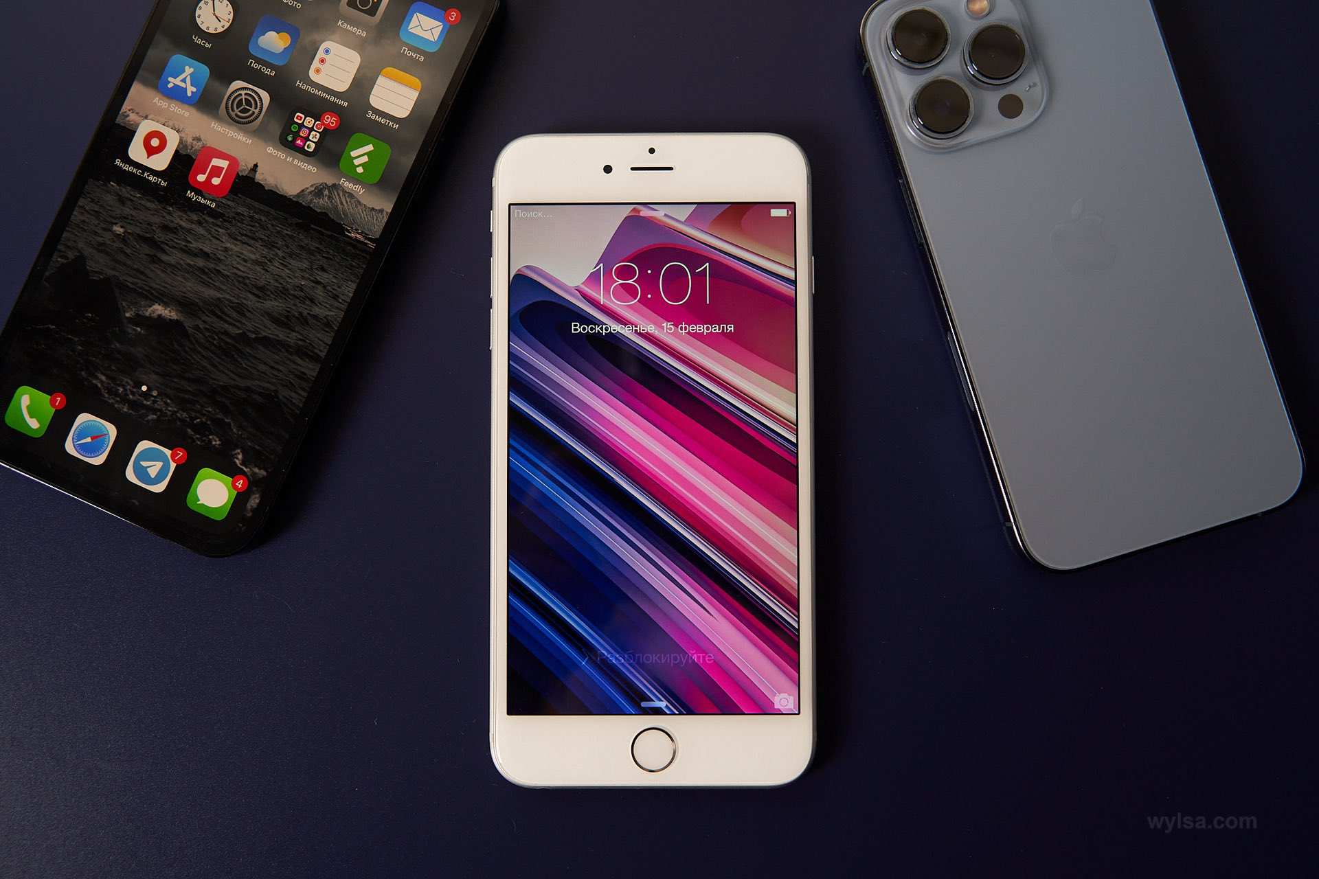 Однако самый большой iPhone в целом по размеру это iPhone 8 Plus. Поскольку у него есть кнопка «Домой» и большие лицевые панели сверху и снизу, он и шире, и выше, чем iPhone 13 Pro Max.