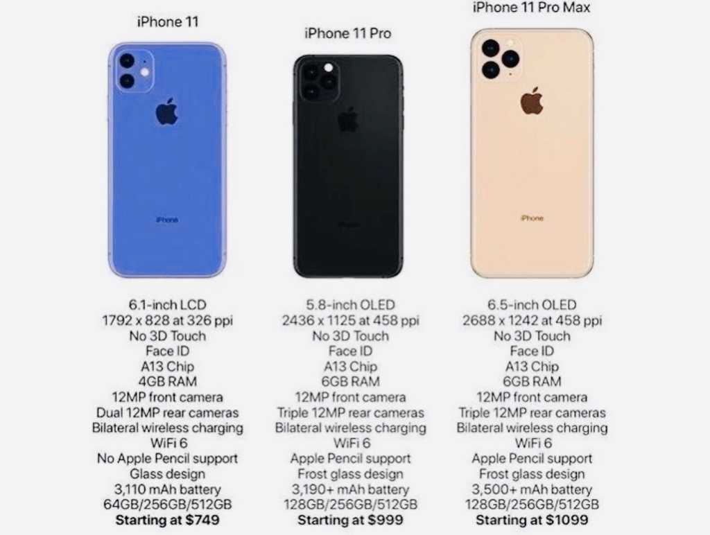 За пару недель до релиза известный китайский сайт рассказал про основные технические особенности новых iPhone 11. Он отметил, что у смартфона будет три версии, и Pro получил три основные камеры по 12 Мп каждая.