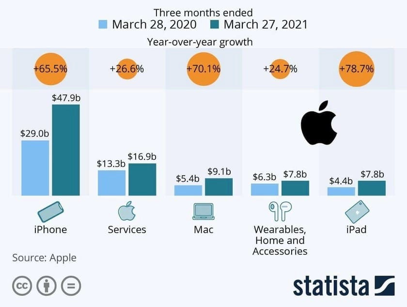 - Выручка также побила рекорды и вышла на уровень 111,4 млрд $, за год до этого был 91млрд $.