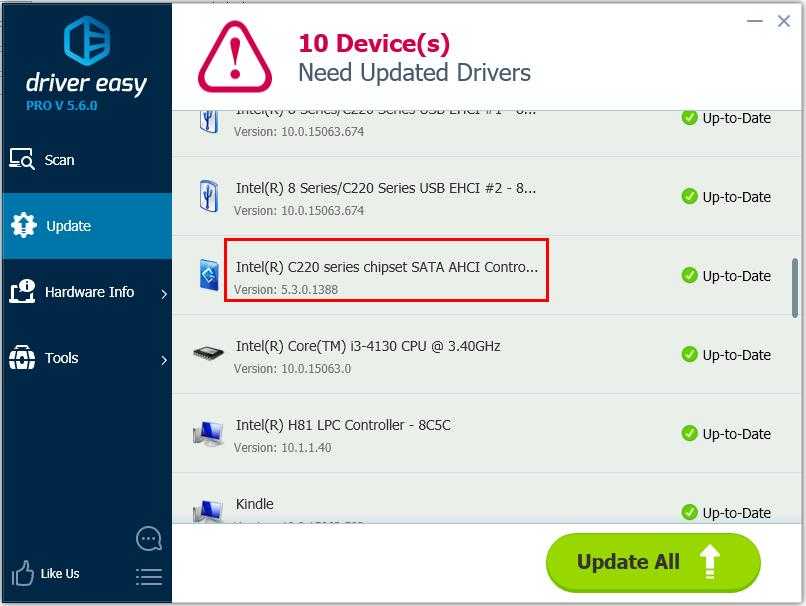 Or click Update All to automatically download and install the correct version of all the drivers that are missing or out of date on your system (this requires the Pro version – you’ll be prompted to upgrade when you click Update All).
