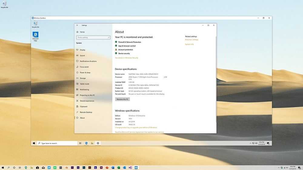 Microsoft добавила способ для пользователей Windows 10 легко проверять неизвестные приложения, не подвергая риску их ПК в процессе. Как только экземпляр песочницы создан, он действует как чистая установка Windows, которая занимает всего около 100 МБ на жёстком диске. Просто создайте экземпляр, запустите любое приложение, которое вы хотите протестировать, и закройте из песочницы, когда закончите. Внедрение функции песочницы непосредственно в Windows, безусловно, станет благом для корпоративных и частных пользователей, которым необходимо постоянно поддерживать работоспособность ПК. Microsoft надеется, что это будет эффективной заменой процесса настройки виртуальной машины каждый раз, когда вам нужно протестировать новый исполняемый файл без риска нанести вред вашей полной установке Windows.