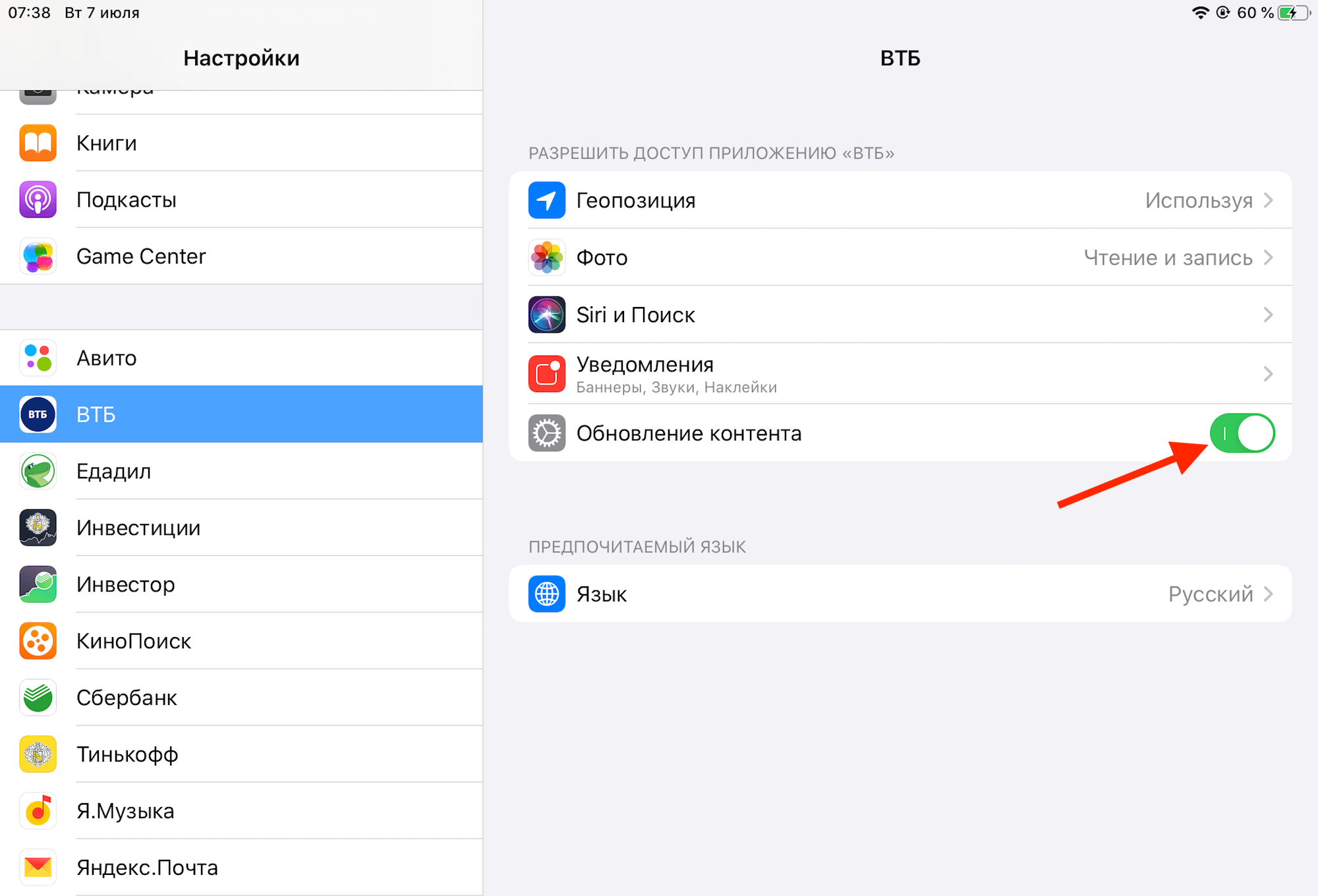Как отключить фоновое обновление контента на iOS
