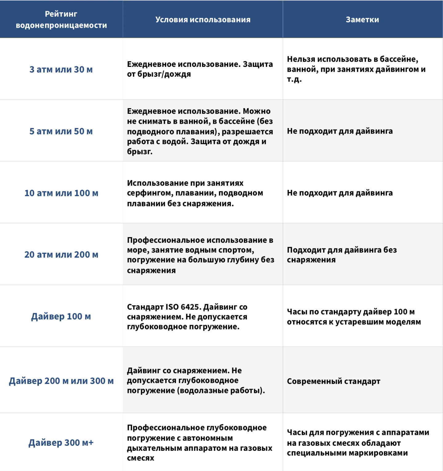 Если вам нужно устройство, предназначенное для использования под водой и дайвинга, вам следует обратить внимание на специализированные продукты с классификацией в соответствии со стандартом ISO 6425. Часы с этой защитой проходят индивидуальные испытания и должны выдерживать погружение на 25% глубже, чем указано на этикетке