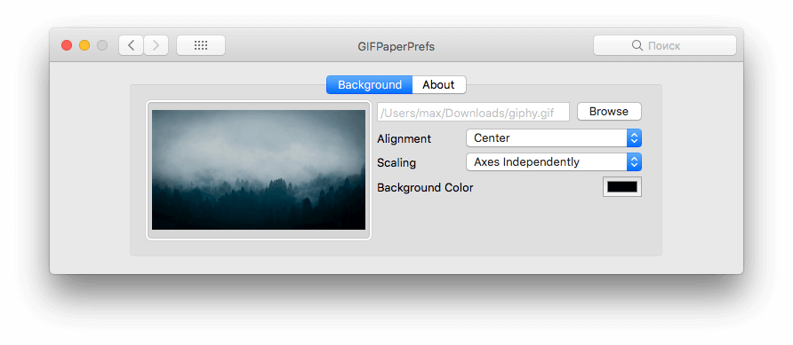 Осталось лишь выбрать подготовленное нами Gif-изображение. По необходимости можно указать параметры выравнивания или масштабирования картинки на рабочем столе. В том случае, если заставка не покрывает всю область, можно также выбрать подходящий фон для нее. Для того, чтобы все работало и после перезагрузки, программу GIFPaperAgent необходимо добавить в автозагрузку.