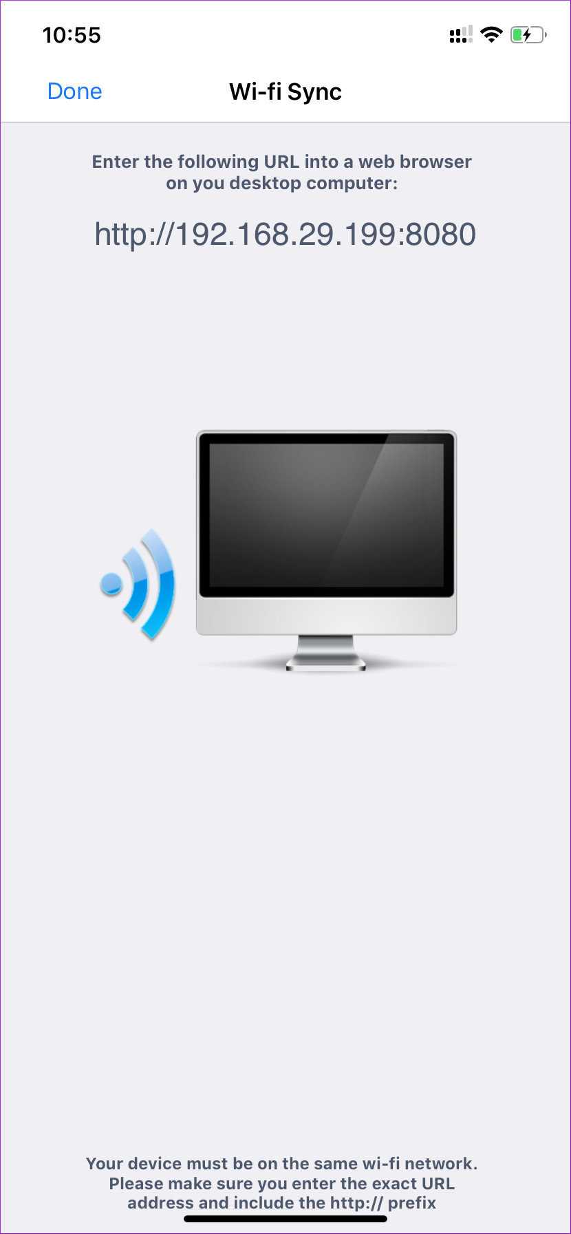 Приложение также поставляется с функцией синхронизации Wi-Fi, которая работает так же, как приложение для документов.