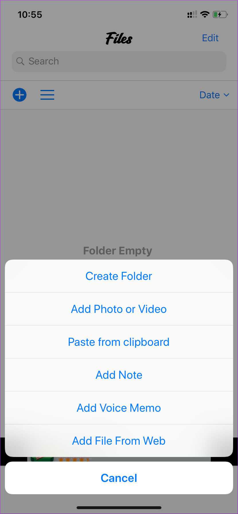 Всего файлов также позволяет создавать виртуальные папки на устройстве. Создайте новую папку и добавьте соответствующие файлы с устройства, а также из любого облачного сервиса.