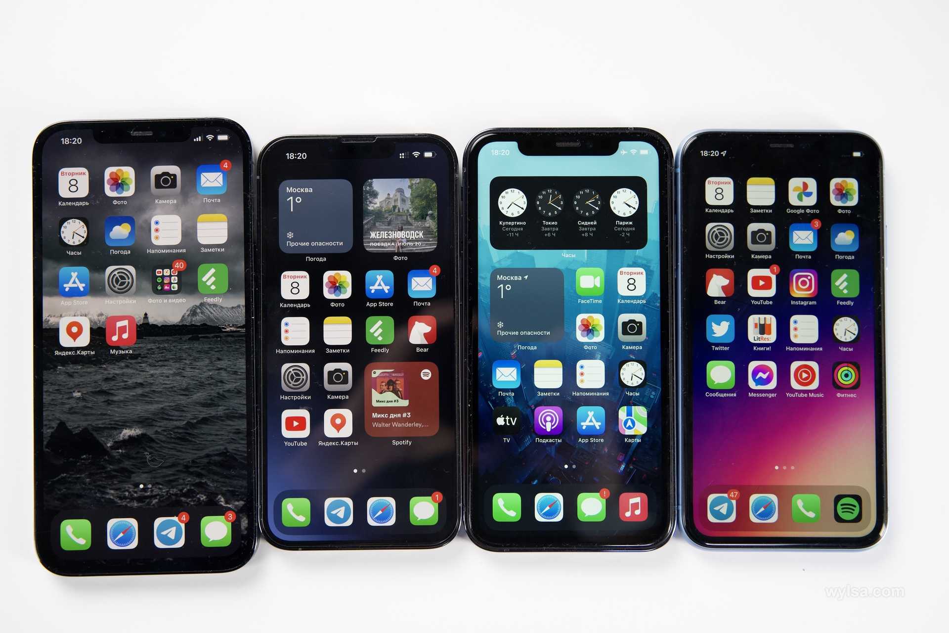 Слева направо: iPhone 12 Pro Max, iPhone 13 Pro, iPhone 13 Pro Plus, iPhone XR