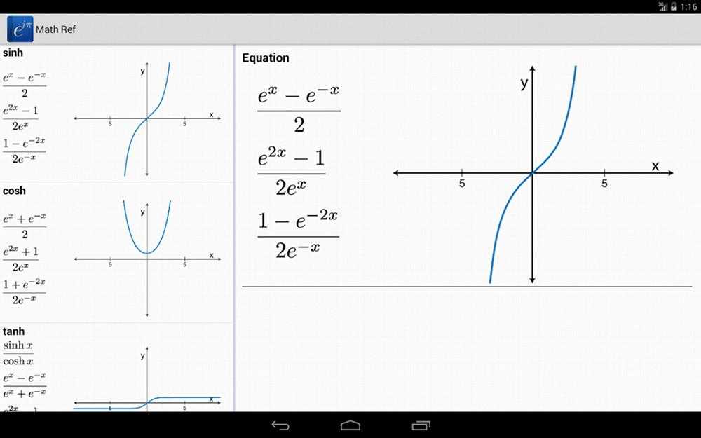 MathRef – это надёжное приложение для быстрого поиска формул по нескольким дисциплинам. Программа не охватывает столько сегментов науки, как Wolfram Alpha, но зато предлагает более детальную информацию по традиционным разделам, таким как алгебра и геометрия. MathRef имеет отличный пользовательский интерфейс, позволяющий добавлять примечания, сохранять любимые уравнения и копировать текст из приложения в электронную почту или текстовый редактор.