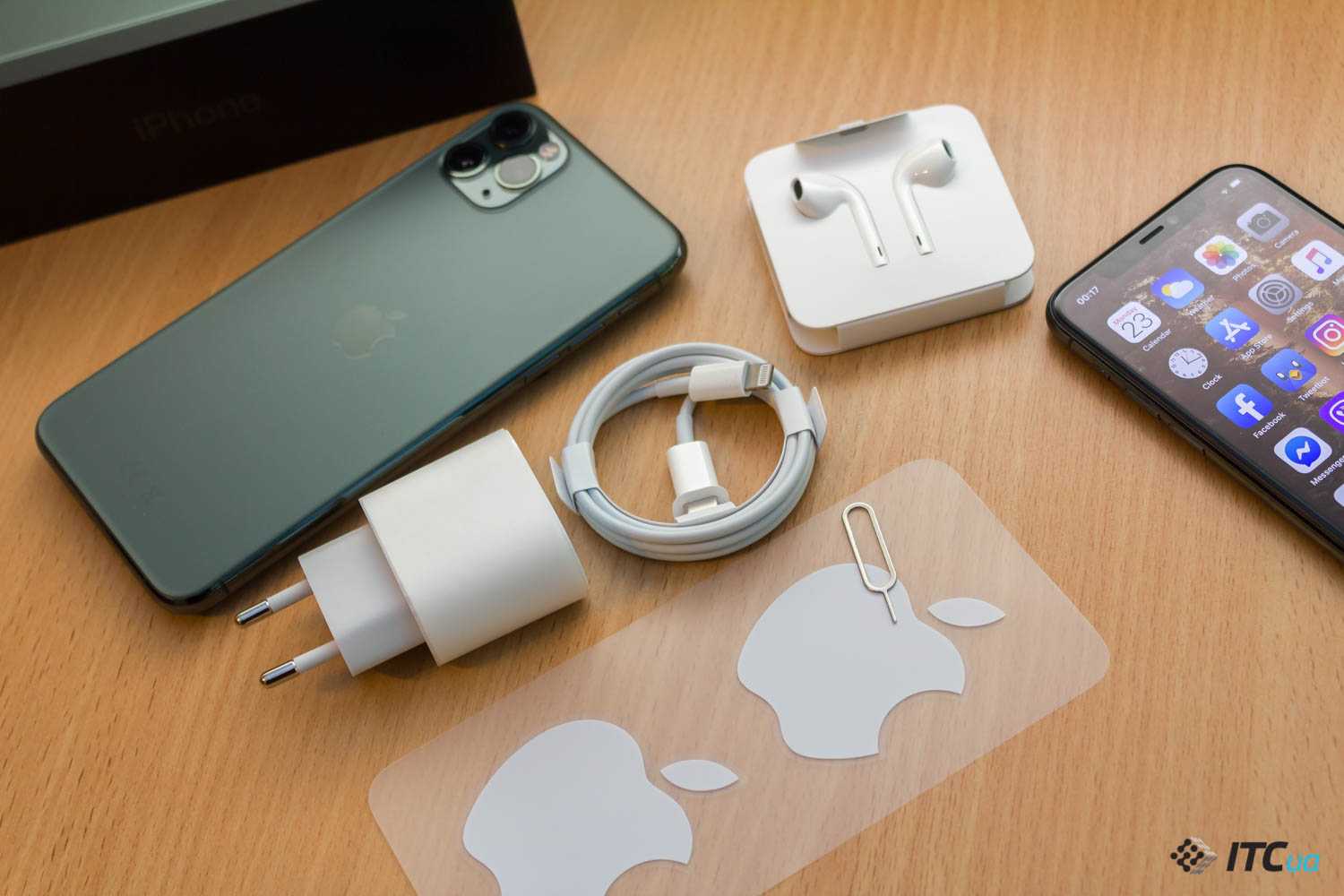 В прошлом году комплект смартфона остался без переходника для наушников. В этот раз его тоже нет, но все остальные компоненты на месте: наушники EarPods с Lightning-разъемом, «скрепка», пара наклеек, кабель и блок питания. Последние получили апгрейды: зарядное устройство теперь мощностью 18 Вт и может быстро зарядить смартфон; разъем на ЗУ теперь не USB-A, а USB-C, и кабель соответствующий. Так что пользователю не придется покупать не самые дешевые аксессуары для быстрой зарядки, так еще и теперь не упрекнуть компанию в том, что новый iPhone не подключить к MacBook без лишних трат.