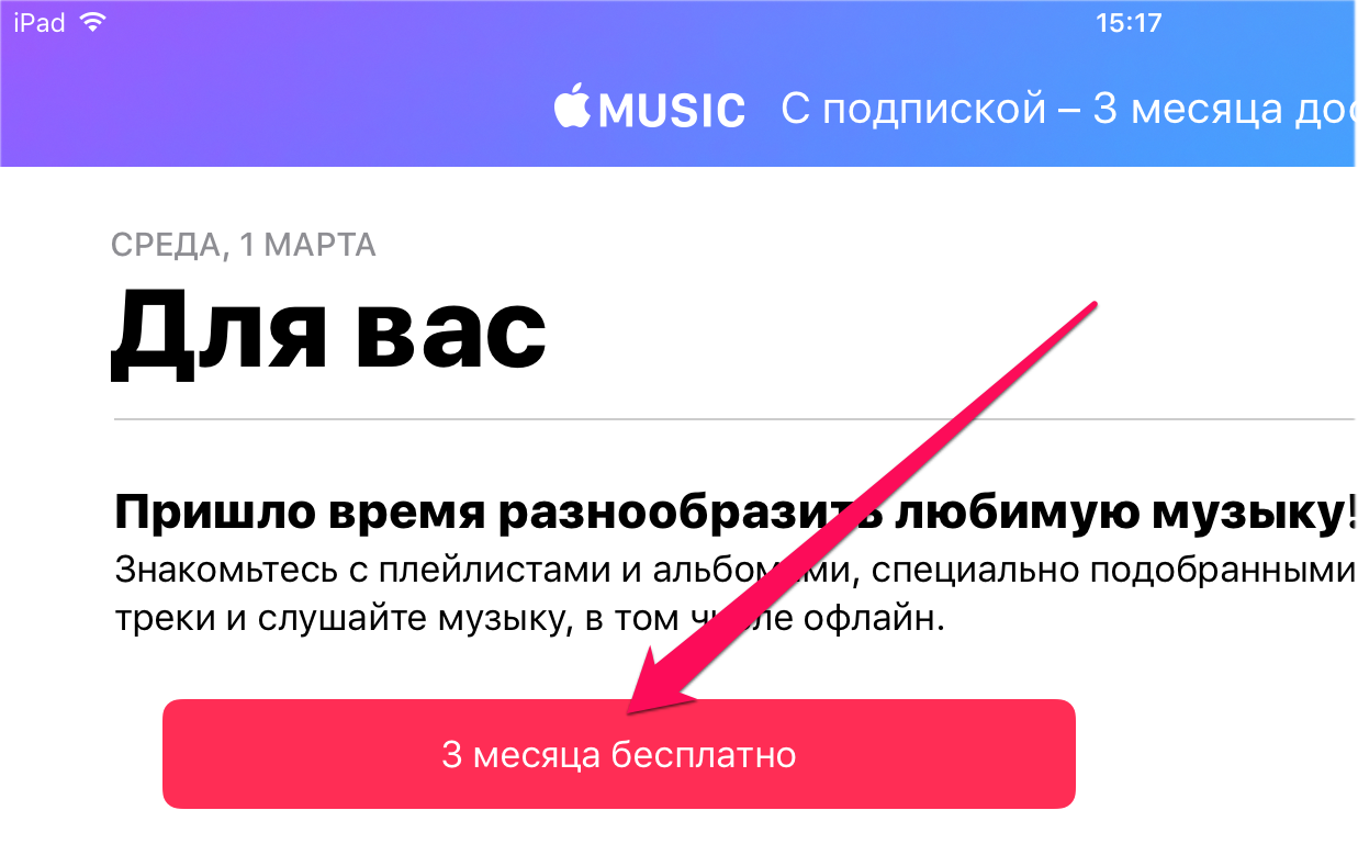 Важно! У вашей учетной записи Apple ID должен быть указан действительный способ оплаты, то есть привязана банковская карты или номер телефона, указанный в качестве способа оплаты. Деньги за подписку при оформлении пробного трехмесячного периода списаны не будут